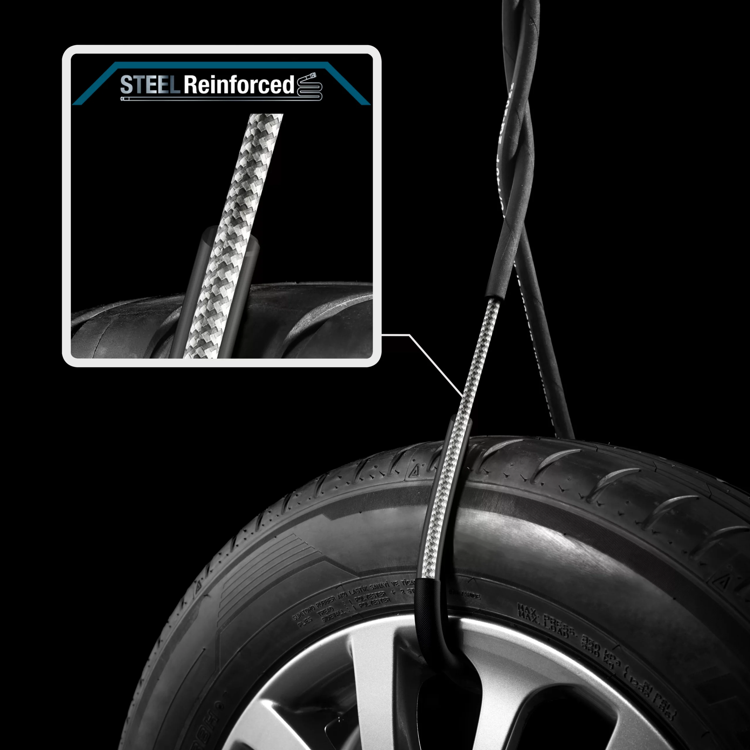 - Integrated high pressure hose reel with 10m steel reinforced rubber hose