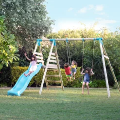 TP Toys Multi Double Green & Wood Swing & Slide (L) 2760mm X (W) 2810mm
