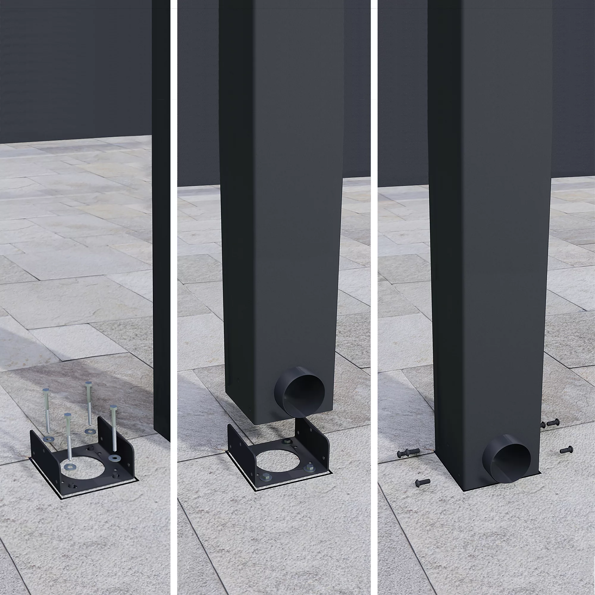 - Robust and massive structure – highly durable & rust resistant anthracite powder coated aluminium profiles and galvanised steel connectors