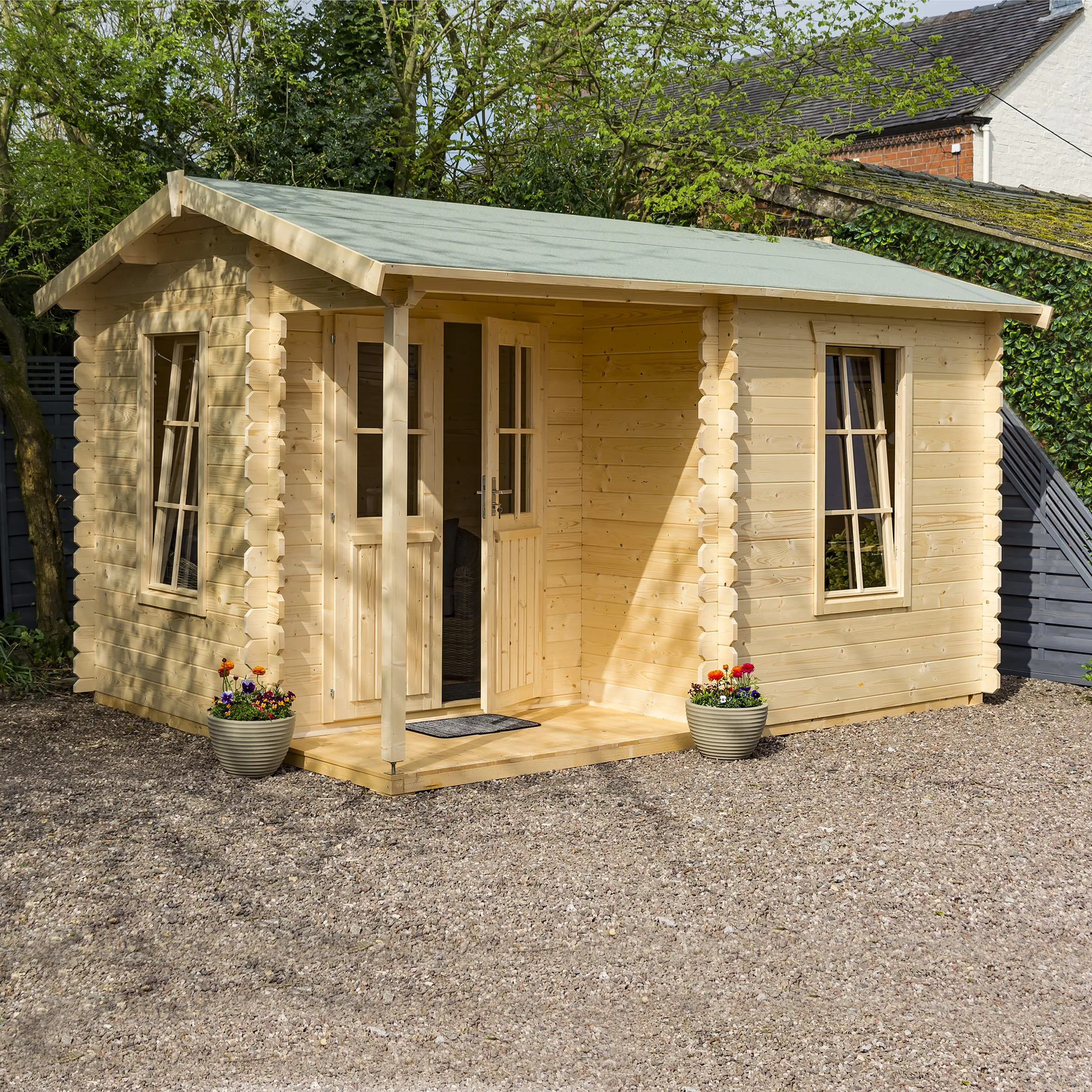 - 28mm interlocking timber log walls