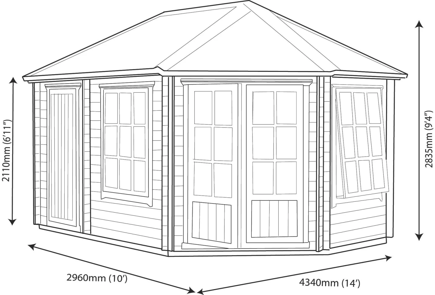 This Leygrove 14×10 log cabin is perfect for use as a summerhouse, workshop or extra storage space. Assembly required.
